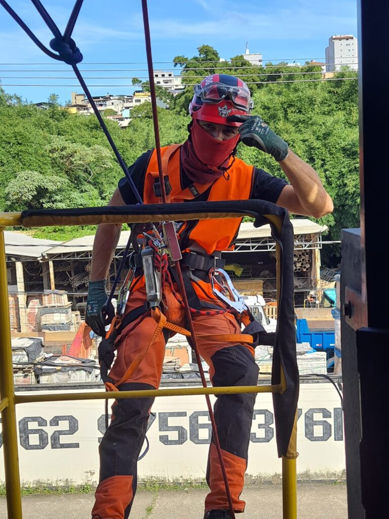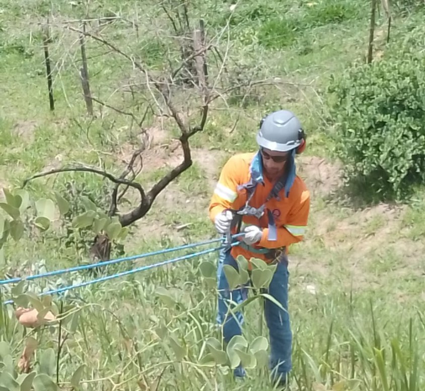 Aqui também somos “desafiados” a levar solução para os clientes em campo diante dos desafios apresentados, por isso estudamos as causas e possíveis consequências para melhor atender aos nossos clientes. Esta imagem representa a solicitação do cliente para criarmos um treinamento de resgate técnico industrial para trabalhos em taludes com cordas.